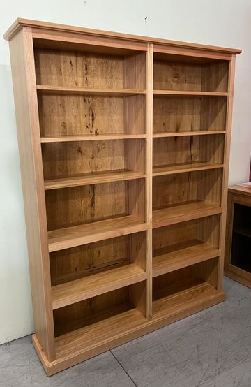 DETAILS: BOOKSHELF MADE IN SOLID TIMBER WITH 2 BOTTOM DRAWERS, ALL FLUSH FACE AND SIDE, KICKBOARD BASE.
